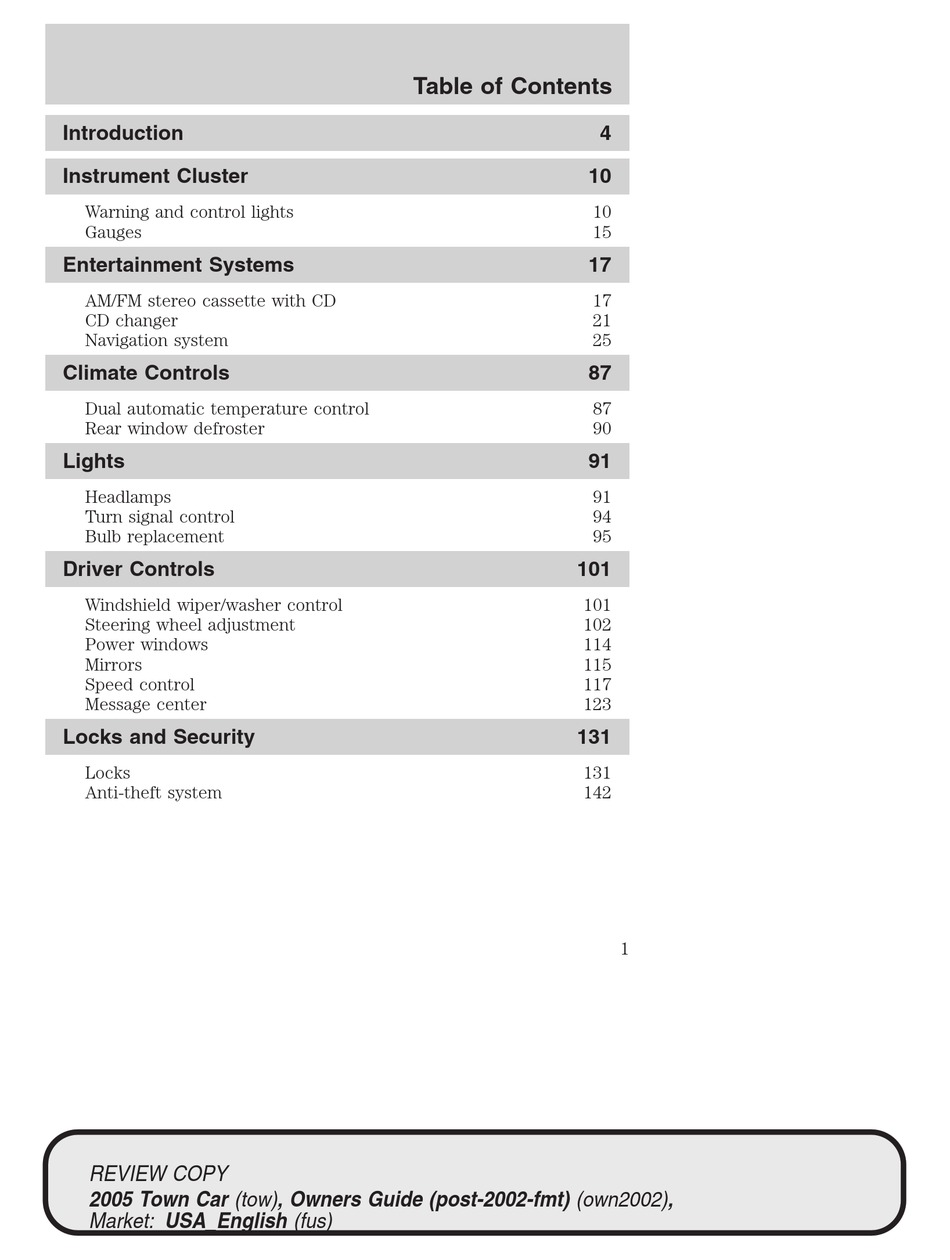 LINCOLN TOWN CAR 2004 OWNER'S MANUAL Pdf Download | ManualsLib