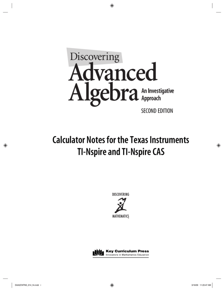 Discovering Algebra An Investigative Approach Ti Calculator Instruments Texas Notes Manualzz
